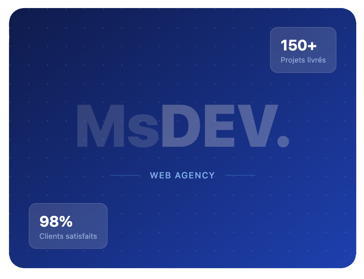 MsDEV est une agence web créative qui accompagne les entreprises dans leur transformation numérique. Notre équipe d’experts combine créativité, expertise technique et vision stratégique pour concevoir des solutions digitales qui génèrent des résultats concrets.